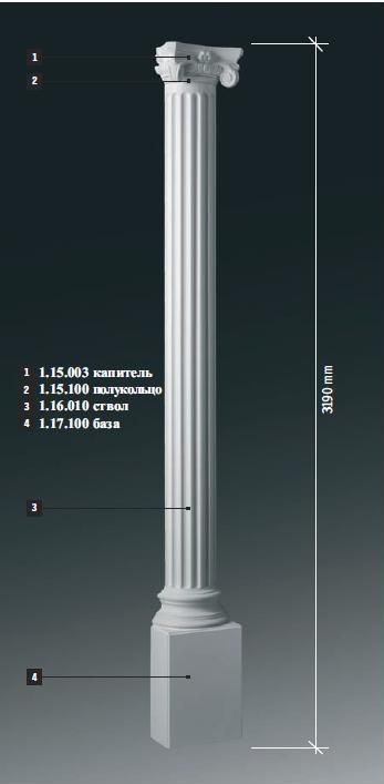 купить Полуколонна в сборе из полиуретана Европласт 1.15.003 Капитель +1.15.100 Полукольцо + 1.16.010 Ствол + 1.17.100 База, магазин