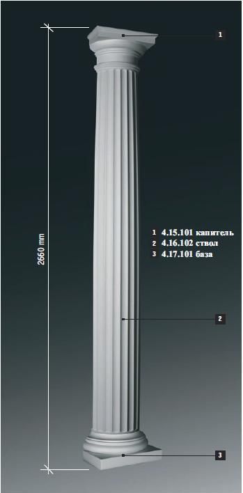 купить Полуколонна в сборе из полиуретана Европласт 4.15.101 Капитель + 4.16.102 Ствол + 4.17.101 База, магазин