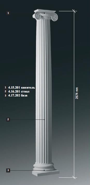 купить Полуколонна в сборе из полиуретана Европласт 4.15.201 Капитель + 4.16.201 Ствол + 4.17.202 База, магазин