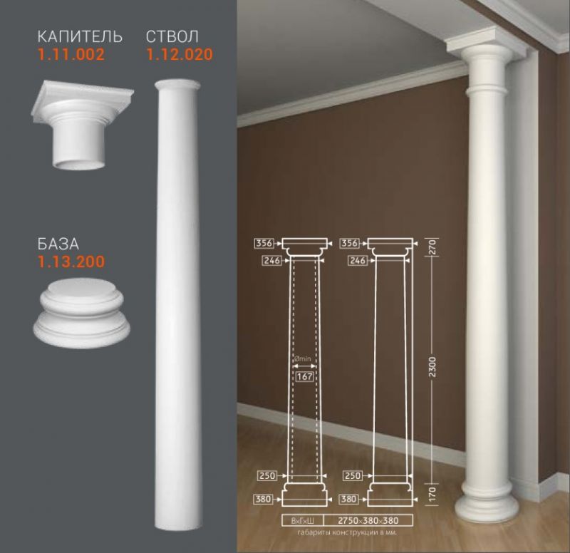 Колонна из полиуретана Европласт 1.11.002+1.12.020+1.13.200 в сборе